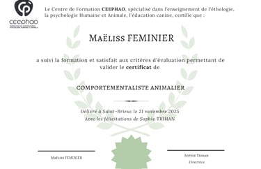CEEPHAO – Formation de 1 an : Certificat d’éducatrice canine